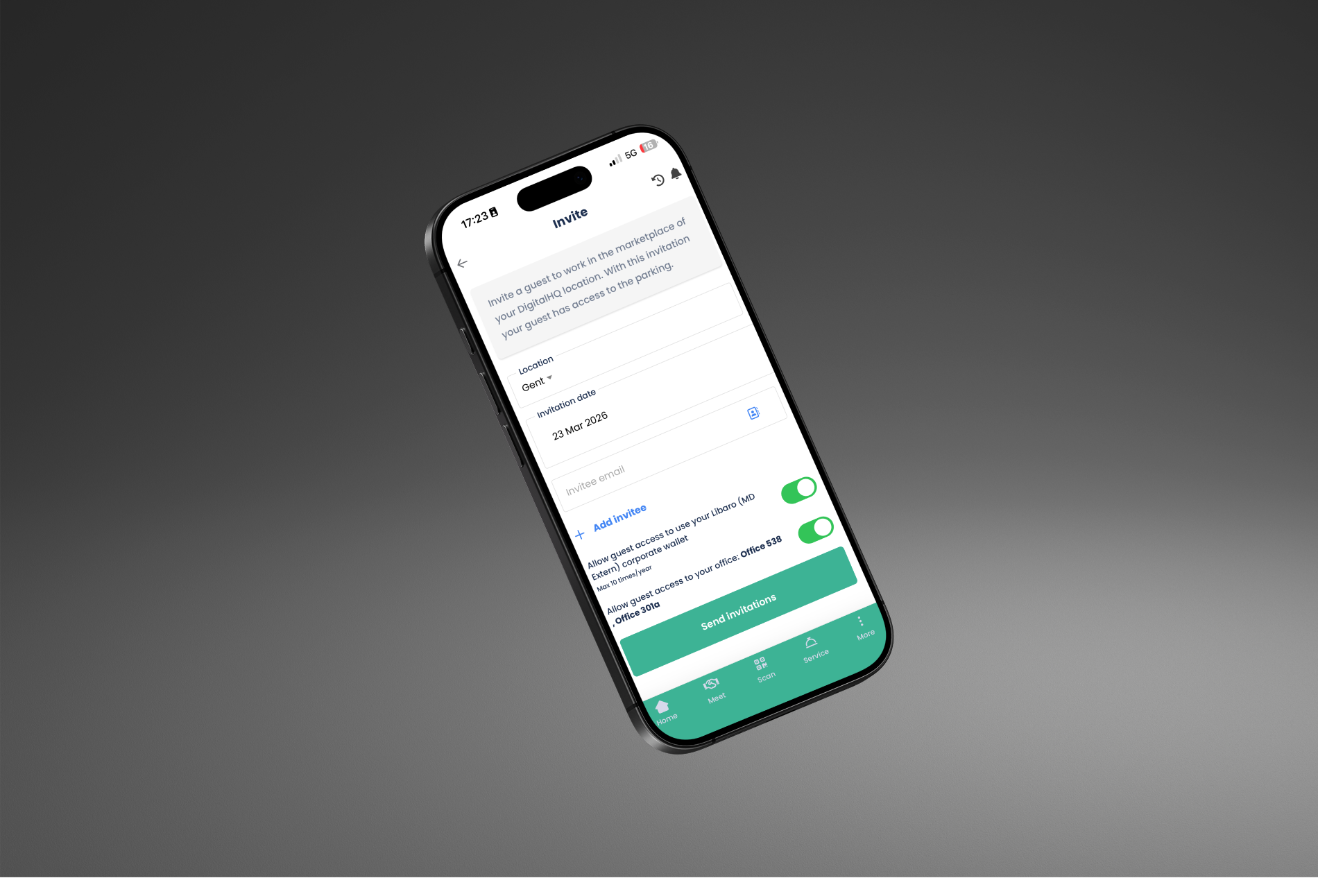 MeetDistrict is een innoverend werkconcept en biedt ieder ondernemend individu de vrijheid om in een professionele omgeving, alleen of in groep, te werken, te vergaderen, en die vooropgestelde deadline te halen. Via een mobiele applicatie kunnen gebruikers hun MeetDistrict diensten beheren. Office toegang, boeken van meetingrooms, instellen van temperatuur, bestellingen plaatsen, ... Een web applicatie centraliseert deze functionaliteit voor alle MeetDistrict gebouwen. De applicatie voorziet ook alle management tools die nodig zijn om het bedrijf te beheren. Bijvoorbeeld bezettingsanalyse, contractbeheer, customer support en automatische facturatie. Zo worden alle processen zo veel mogelijk geoptimaliseerd en kan er gefocust worden op het perfectioneren van de dienstverlening.