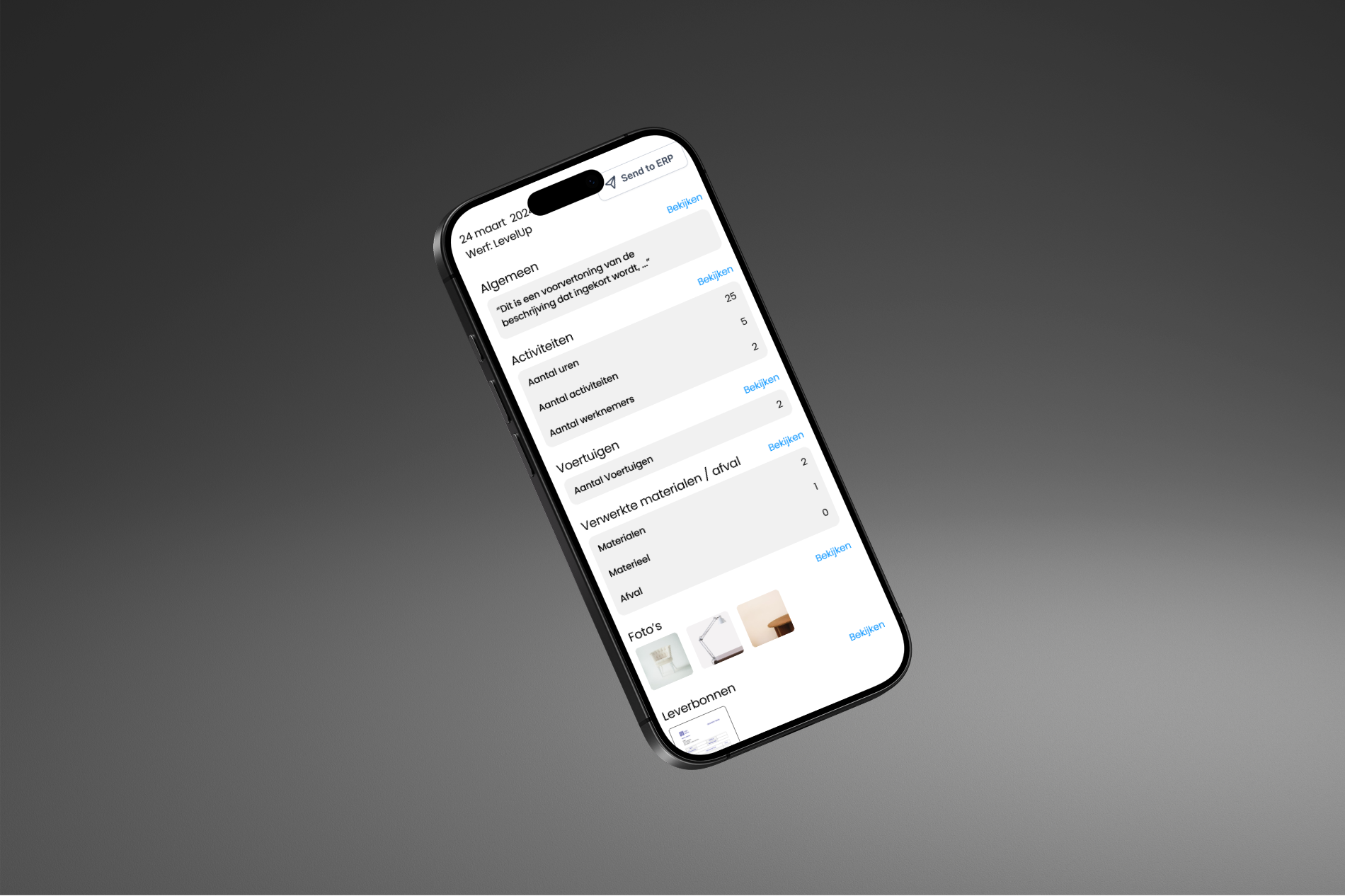 Realtime monitoring van omzet versus kosten door integratie met je ERP-systeem. Van werkbonnen tot voortgangsstaten en facturatie – alles leidt tot een nauwkeurige winstberekening. Deze integratie biedt een krachtig overzicht dat helpt bij het optimaliseren van processen en het verhogen van de winstgevendheid.
